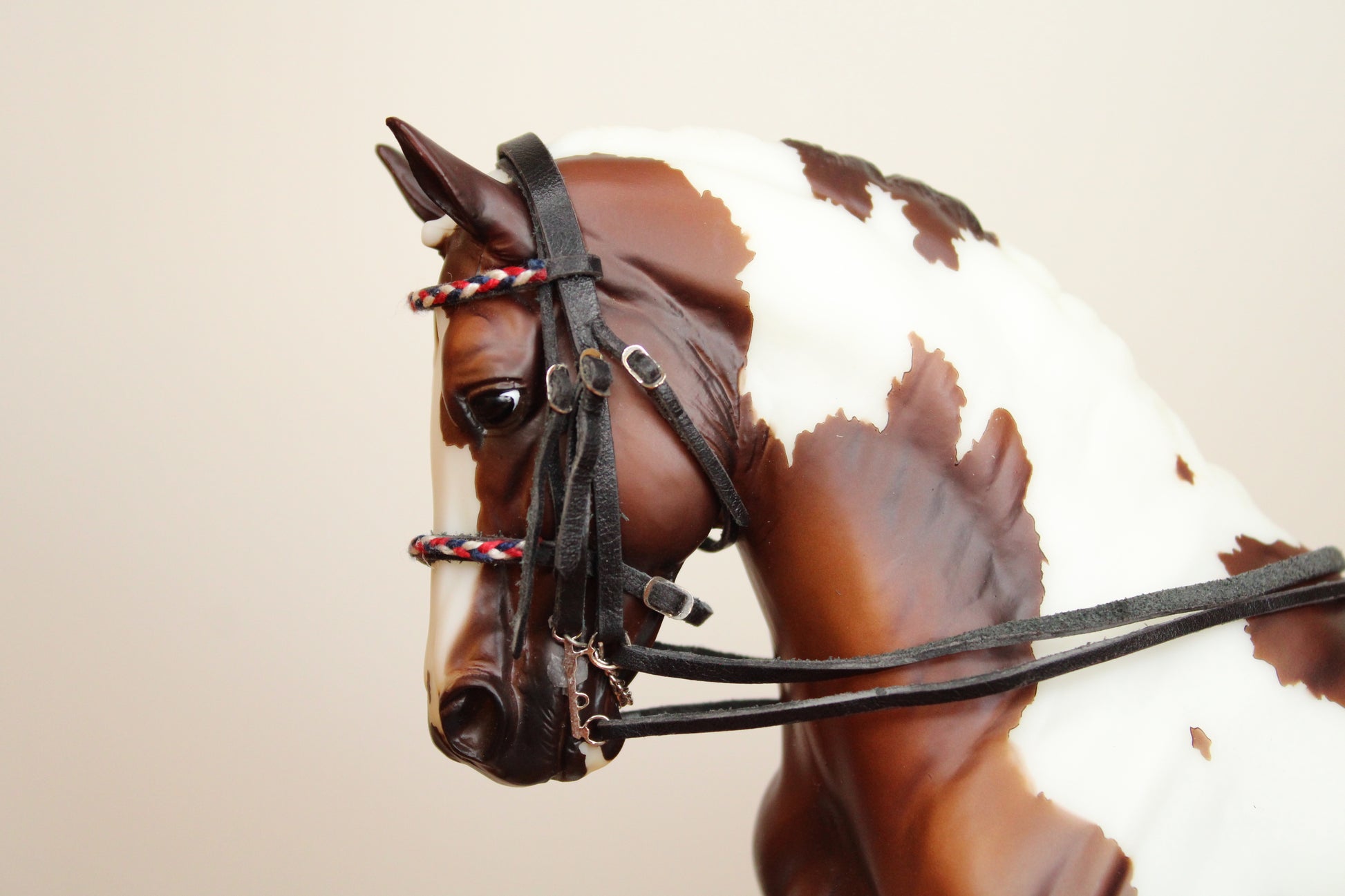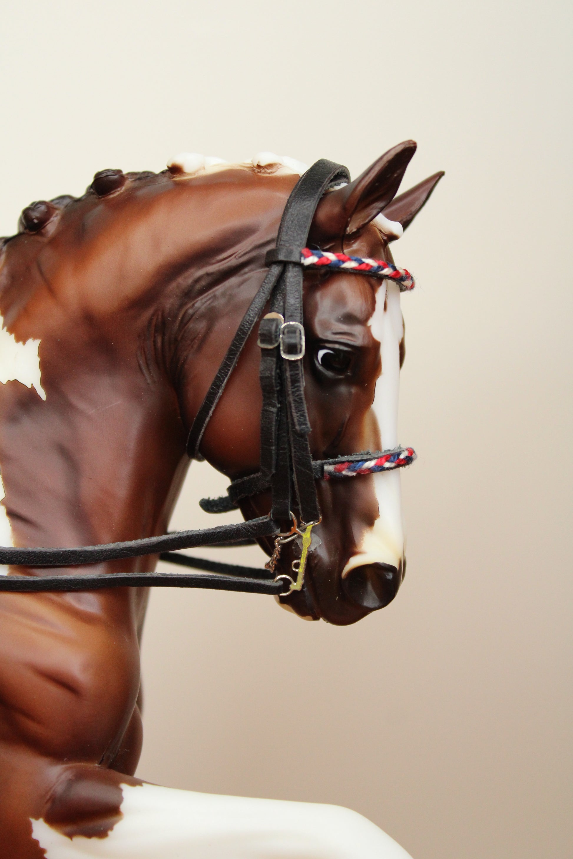 Frontal et muserolle tressées tricolore, gourmette.